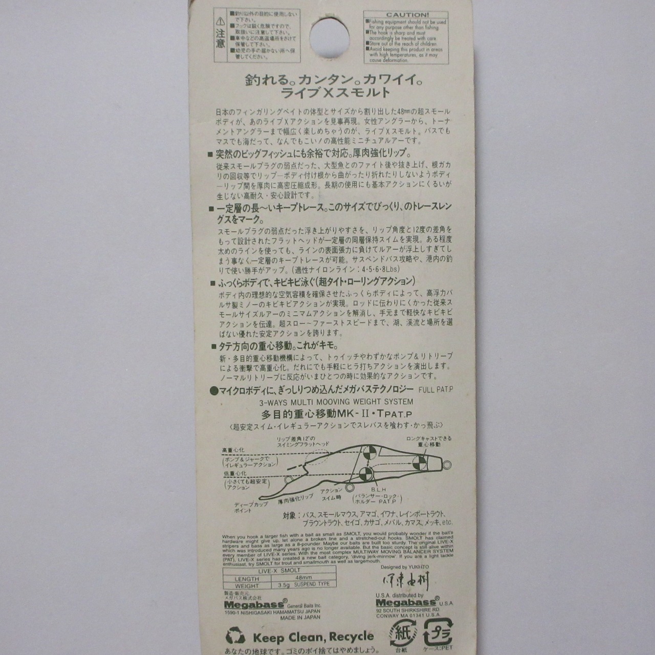 3.5g/48mm SP megabass Live-X SMOLT SUSPEND MODEL メガバス ライブXスモルト ミノー Color:SKELETON CHART サスペンド トラウト バス 海の小物 ルアー ヴィンテージ オールド レア 希少