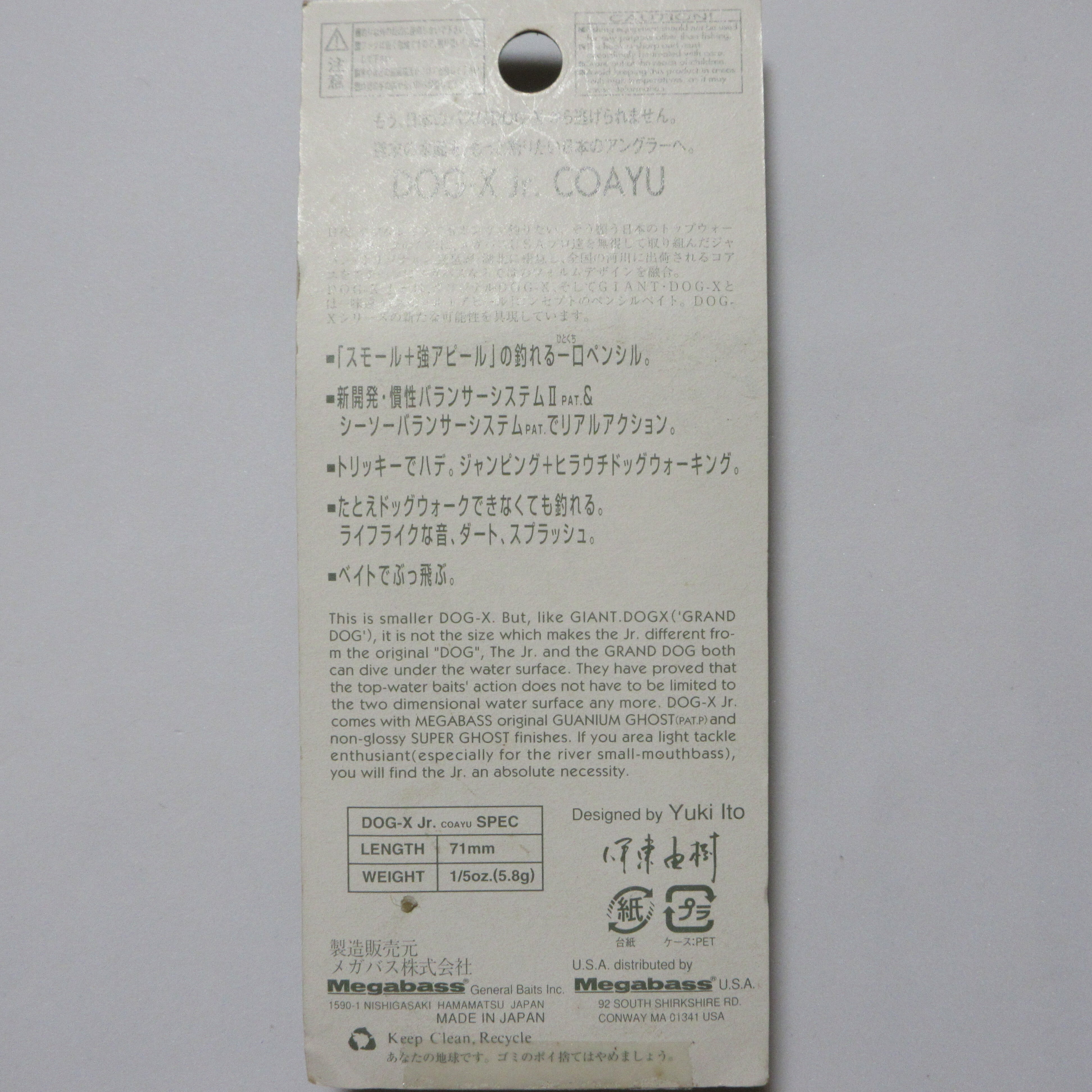 ■メガバス (megabass ORIGINNAL "HANDICRAFT" DOG-X Jr.COAYU)