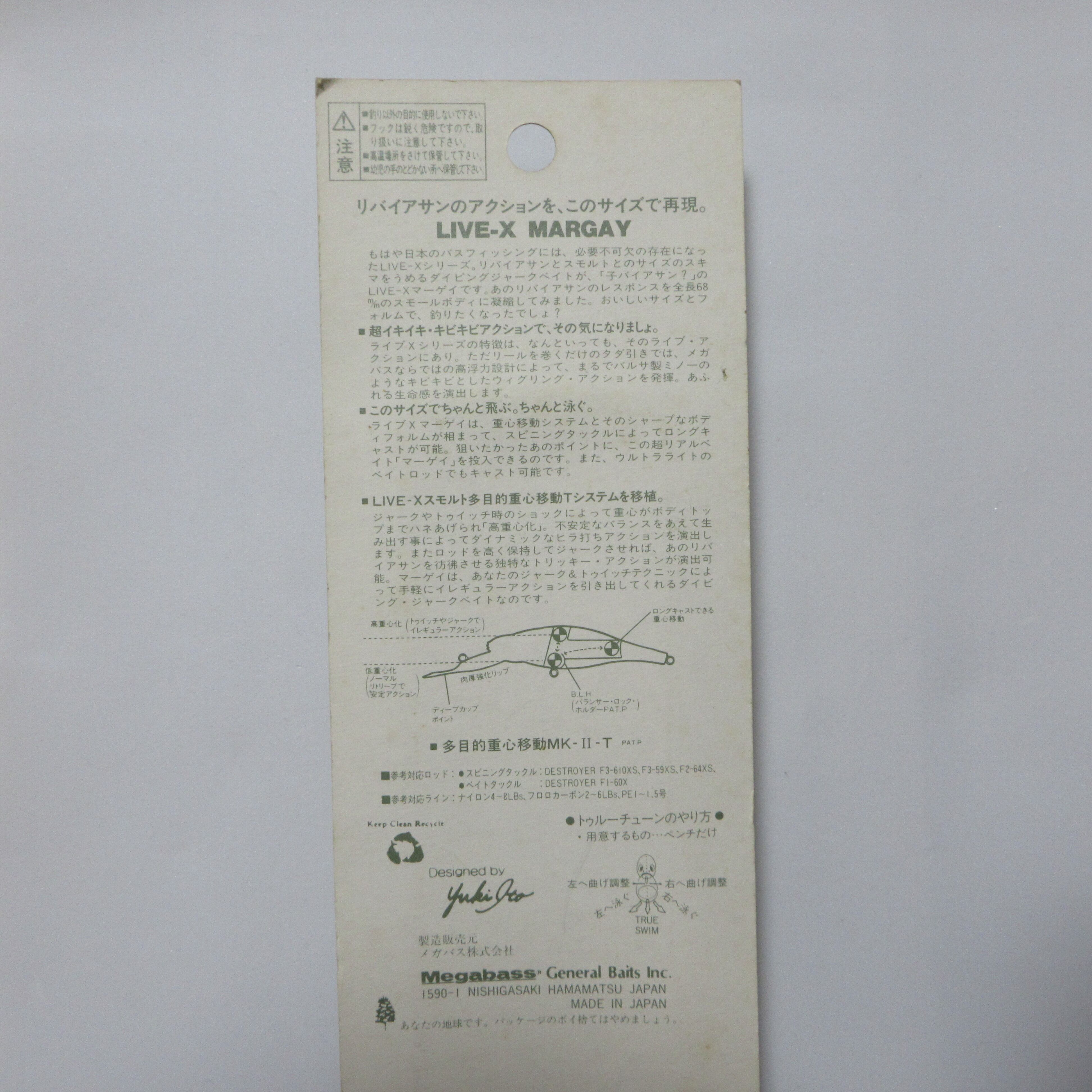 6.7g/68mm megabass Live-X MARGAY メガバス ライブ-X ミノー Color:SGアユ トラウト バス 海の小物 ルアー ヴィンテージ オールド レア 希少